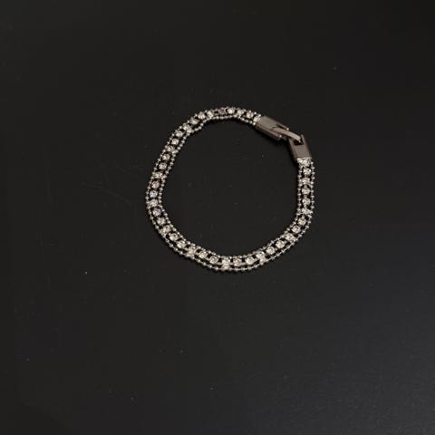 Lekkert strassarmbånd i sølvfarget metall med blanke stener. Armbåndet er aldri brukt, og lukkes med smykkelås. Jeg sender stort sett alltid første virkedag etter mottatt penger for frakt :)