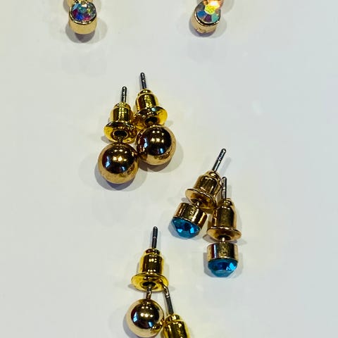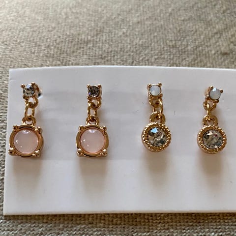 Superfine små øredobber i rosa, gull og grønn. Alle parene selges samlet til 100 kroner. Jeg sender stort sett alltid første virkedag etter mottatt penger for frakt :)