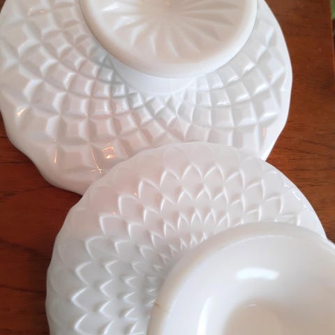 #pressglass #hvitt #glass #opalin #opalinglass #melkehvittglass #skål #potteskjuler #stettskål #vintage #skål