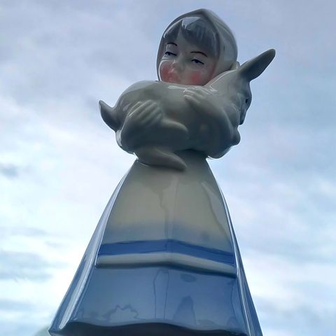 porselen figur porselensfigurer porselenfigur dame jente blått hvitt lyseblå lyseblått