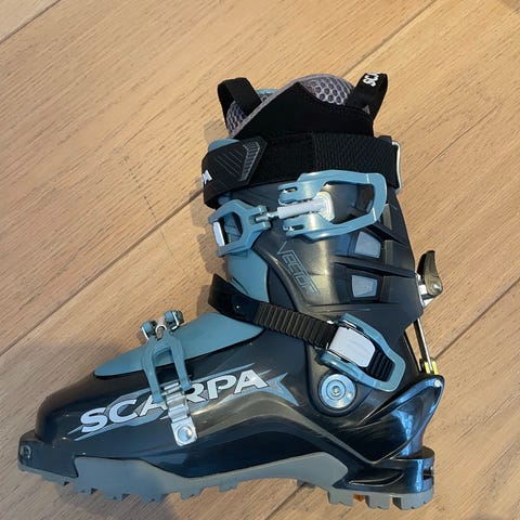Scarpa Vector toppturstøvler selges. Brukt en halv tur i bakken. Selges pga feil størrelse.