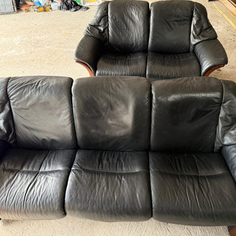 Ekornes Stressless, Pause, Lav 3 seter sofa i hud, Cori black, sort beiset understell, 2019- modell. Ny pris 24 000,- i 2019. Stått ubrukt på lager siden april 2022. Kjøper henter og betaler via Vipps.