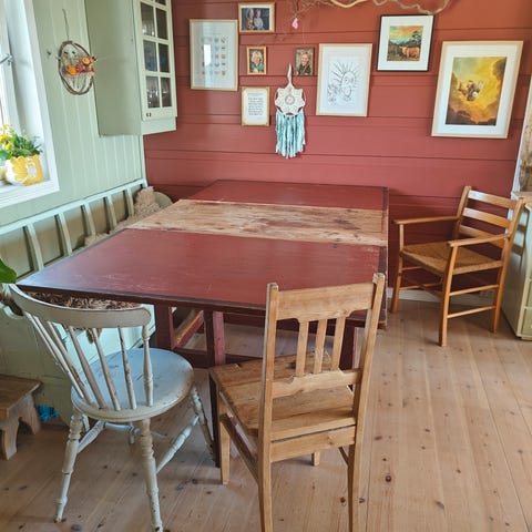 Dette bordet gir en helt spesiell følelse i huset. En følelse av varme, bonderomantikk og det klassiske Norge på sitt beste. Alle som kommer på besøk blir interessert og fascinert av bordet.