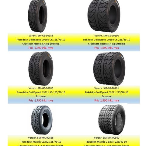 # Dekkene som skal benyttes fra 2026 er listet i denne annonsen, det er de samme som er oppført i reglementet til crosskart hos NBF.