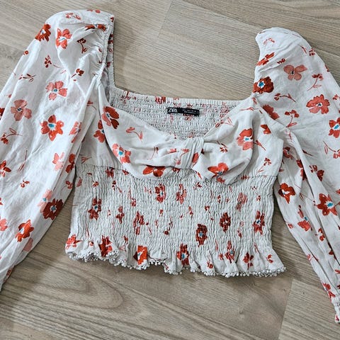 Svart asymmetrisk overdel fra Zara med knyting i livet i str L. 😊