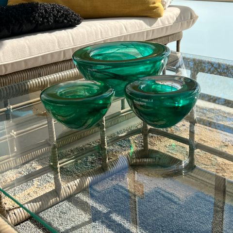 2 små lysestaker til T lys. De skal se litt rustikke ut i endene.De er kjøpt sånn. Må hentes.