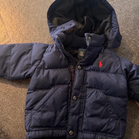 Pent brukt jakke fra Ralph Lauren i størrelse 2 år selges. Klar blå farge. Skjulbar hette. Minimal bruksslitasje, men mangler hette på én av luftehullene, se de to siste bildene. Kommer fra et dyre- og røykefritt hjem.