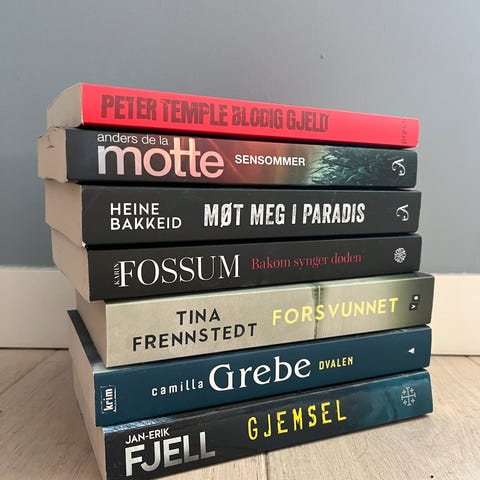 5 bøker fra Bokklubben, alle fem med kjente titler, alle innbundet m/omslag, som nye, selges kr 100,- per stk. Samlet kr 400,- pluss porto/frakt.