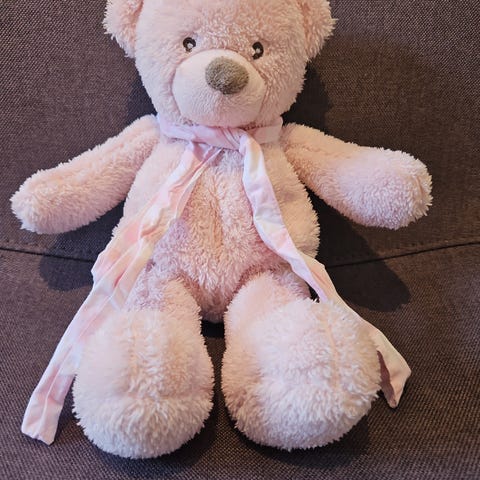 Søte bamse, pyntet med rose blømst og sløyfe " Somenone Spesial "