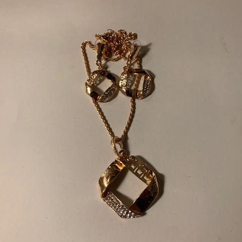 Hals-smykke/ørepynt (gull-farget m/blingbling)