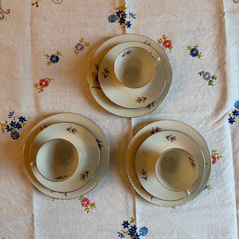 Kaffeservise fra Porsgrund Porselen med gullkant 6 sett