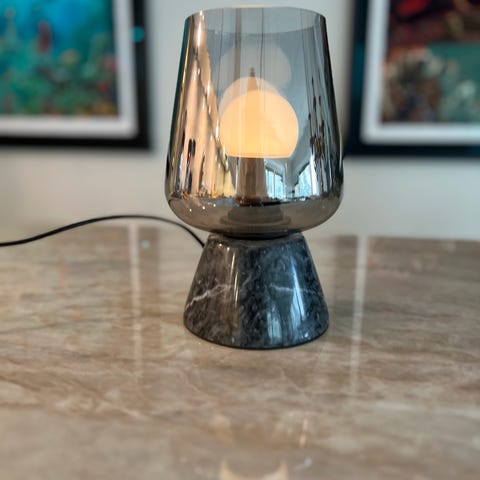bordlampe med marmorfot stor lyspære