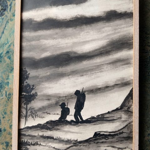 3 tegninger, ytre rammemål er 30 høyde og 22 bredde og en noe større som er 39 høy og 29,5 bred. Alle er tegnet av Dag Storaker til meg. Grunnet flytting til mindre bolig trenger de et nytt hjem. kr 1 500 kr pr stk for de minste og 1 950 for bjørnen. For alle 4 kr 6 000 Kjøper betaler porto. Eller vi møtes Hadeland/Ringerike.