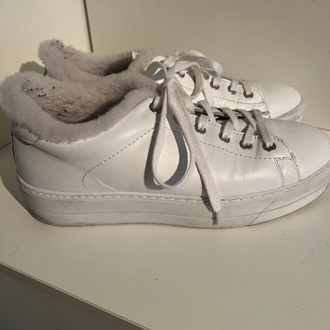 Fine og behagelige helhvit, varmtfôret sneaker med platåsåle med nydelig pelskant i ull fra Stockholm Design Group. Skoene er har overdel av glatt skinn og pels på innsiden med skinnsåle. Butikkpris er: 1499 kr