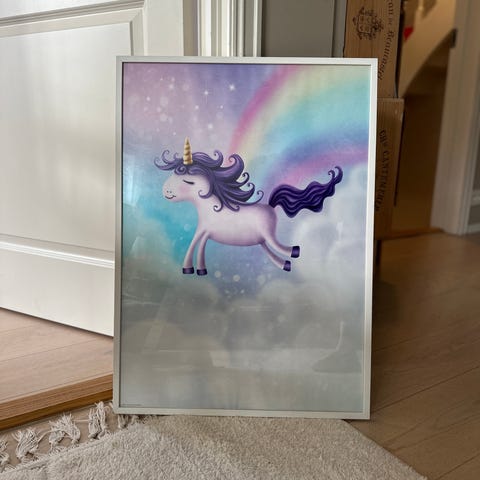A4 bilde pent innrammet i rosa Ikea ramme.