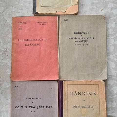Norske våpenmanualer fra 1930 - 1960 tallet selges.