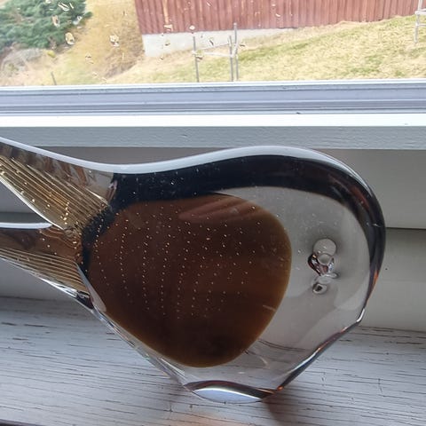 Tung glass fugl. Lengde 26. Høyde 18 cm. Må hentes.Gammel og arvet.