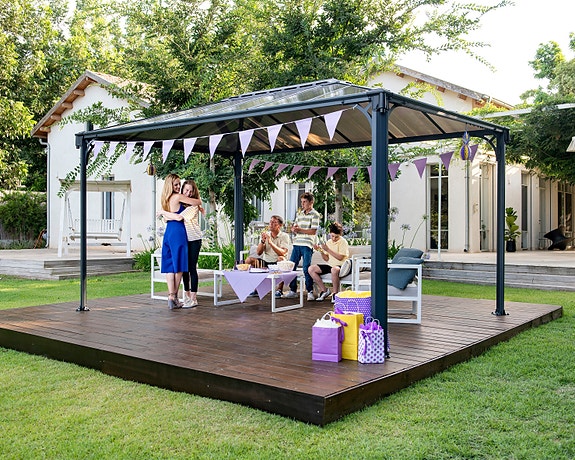 - Hagestuer, terrassetak, paviljonger og drivhus fra CANOPIA-sortimentet til PALRAM
