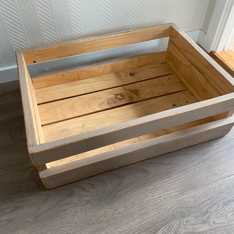 Trekasse. Høyde 10 cm. Hver side 20 cm. Kan også brukes til andre ting enn is.
