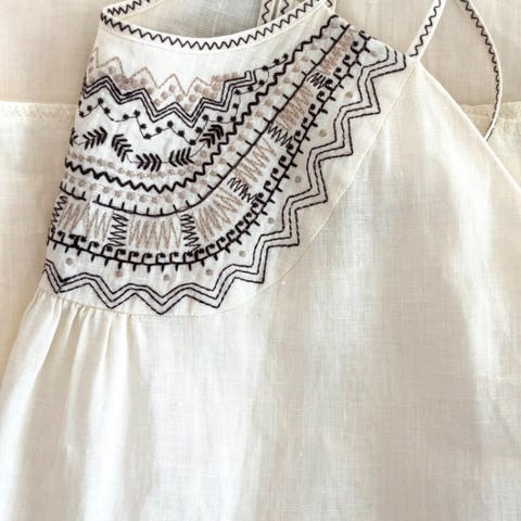 Purple lining at bust inside. Navy Stitching outside with scalloped details.