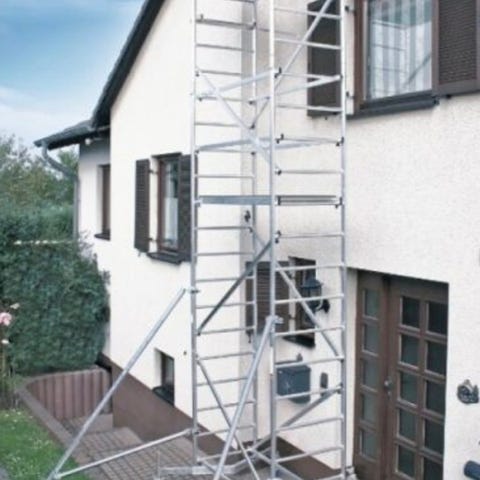 Hobbystillas i aluminium til leie. Enkelt og fint stillas til hjemmebruk til maling og arbeid på fasade etc. Arbeidshøyde ca 6-6,5 meter. Bredde ca 2m(netto arbeidsbredde på platting ca 1.80m). Lett og enkelt og montere og flytte. Med hjul så veldig enkelt å flytte rundt. Prisen er for hver påbegynte uke. Kjører ikke ut, må hentes med egen henger.