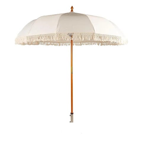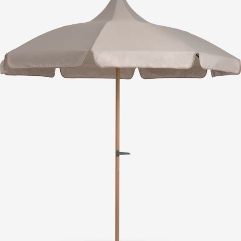 Fra Parasoll fra italienske Scolaro, med midtstilt stang i lakkert hardtre, som gir denne parasollen et klassisk og elegant preg. Dette er den originale parasollen fra Scolaro, første gang produsert for 40 år siden!
