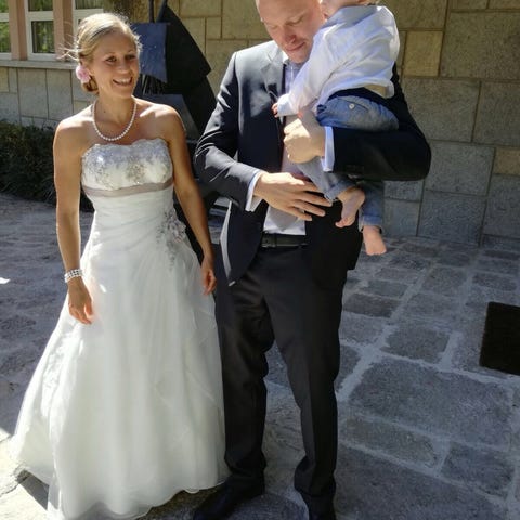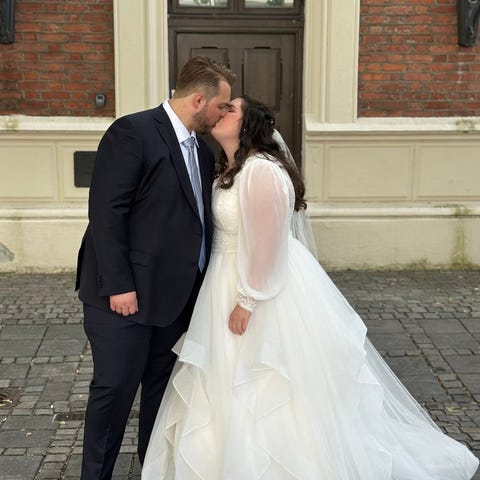 Selv var jeg en xl da jeg giftet meg, da var den faktisk litt stor slik at den ble litt for mye snørt sammen bak, men vil si at den kan ligge kjempe pent på damer fra xl-xxxl (avhengig av form) pga snøringen.