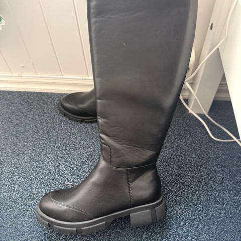 Klassisk svarte i kalveskinn. Glidelås på sidene. Noen små hakk på hælen, ellers meget pent brukt. Høye hæler. Selges siden jeg sjelden bruker dem.
