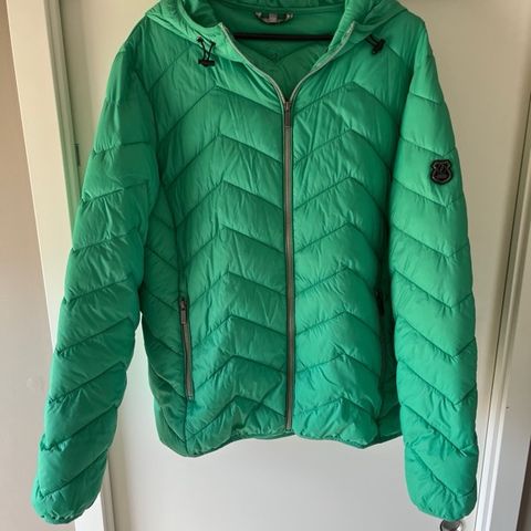 Selger en helt ny ubrukt jakke i str. 42/XL, en blanding av bomull og elastan ( stretch material ), 2 lommer forran, sizen justeres opp eller ned med et belte, tøffe detailjer på baksiden