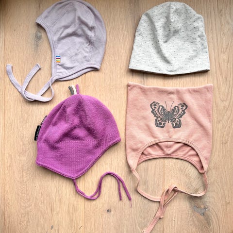 Usikker på størrelse på den andre luen og vottene men brukt i samme periode som Joha luen.
