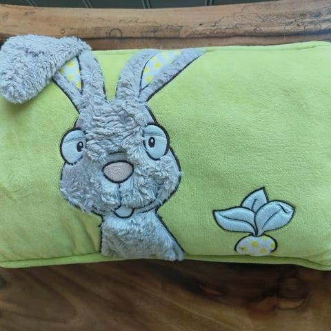 Fin pute formet som bil i fargene blå, rød og gul. Passer fint på barnerom og lignende.