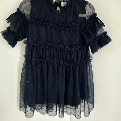 Nydelig og nett penkjole i chiffon aktig stoff ytterst, svart med svarte blanke detaljer