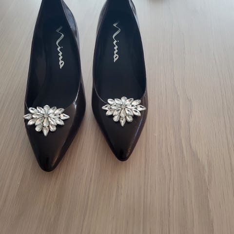 Ubrukte lekre sorte Michael Kors skoletter str. ca 40,5 (9,5) selges fordi de er for store og fordi jeg har fått en kneprotese og kan ikke bruke høye hæler. De er i skinn med 9 cm høye hæler på det høyeste. Ankel-høyt skaft med strikk på sidene for god passform. Ny pris var 1600 kr. Selger de for mindre enn en tredjedel av ny pris. Aldri brukt. Lengde på fot innvendig ca 26 cm.