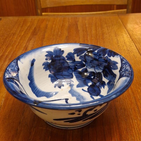 Nydelig bolle som er håndlaget og en kopi av de gamle fiske suppe bollene fra det kinesiske dynastiet. Malt i gull. 2 praktfulle løvehoder med poter som holder bollen.