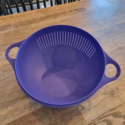 Multisil fra Tupperware som passer oppi rørebollene fra samme merke. Bollen kan fylles med 1,7 liter vann. Når man bekker den over i motsatt stilling, så renner væsken ut. Perfekt til skylling av ris, som gjerne skal stå litt i vann underveis, eller ved siling av pasta, spaghetti++.