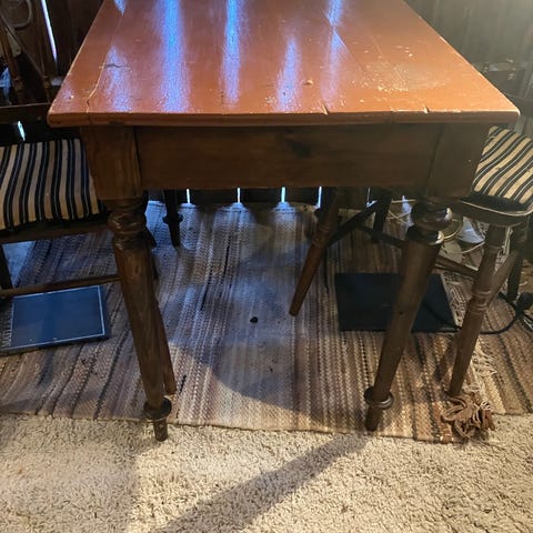 Gammelt gråmalt slagbord.