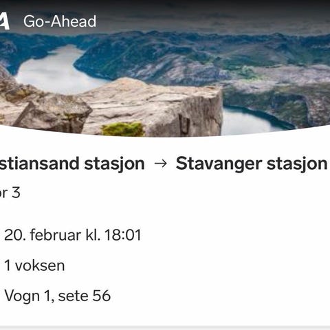 Avgang stavanger stasjon 10:16 fredag 26.mars.