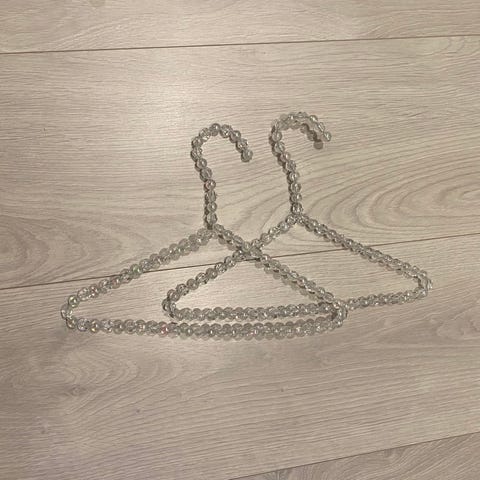 Svært pent brukte kleshengere i tre med pyntehjerter. 6 stk. Selges samlet kr 80,-