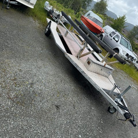 Det ene bilde viser en 27 fots båt som veier ca:4,6ton olasert på vognen.