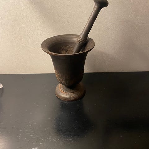 Fatet er 18cm. I diameter og har noe slitasje.