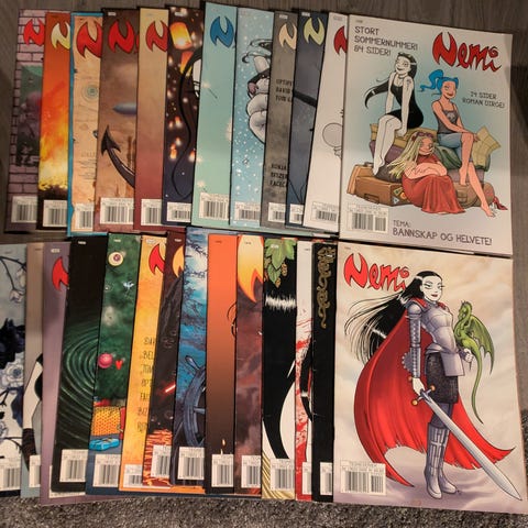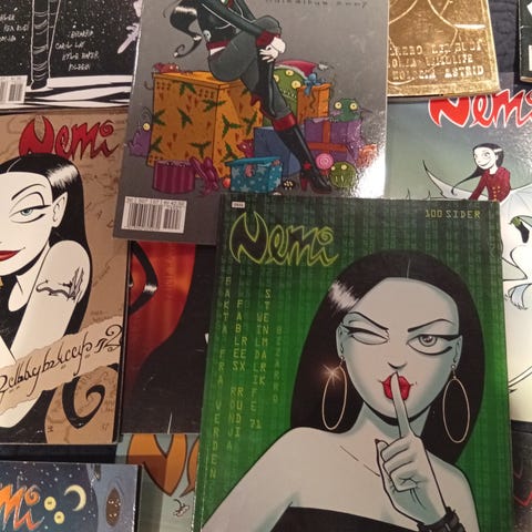 Selger 70 ulike Nemi-album. Kvalitet oppgitt på hvert nummer, VF tilsier at bladet er feilfritt, F at bladet er fint. Selges samlet