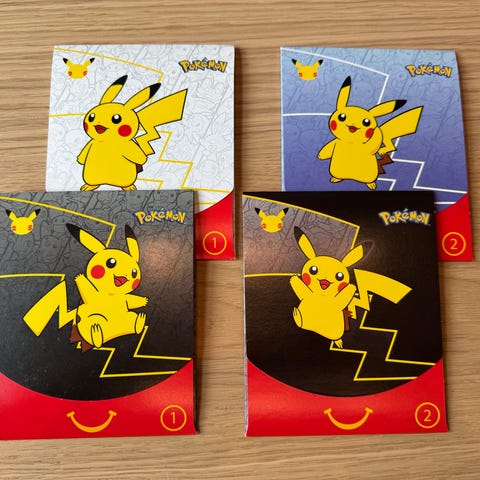 For å feire 25-årsjubileet til Pokémon har McDonald's sluppet en spesialboosterpakke som inneholder 4 kort og en tilfeldig leke.