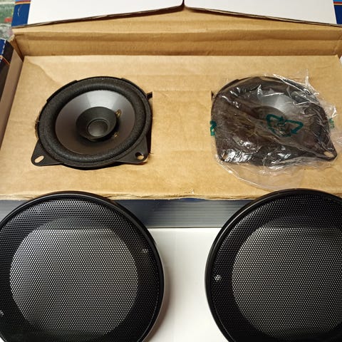 Kjøpt på Neby Hi-fi for 20år siden! Ligger fortsatt ubrukt i esken! Bør sikkert bytte skum/pakning. Ingen skader på domen eller gitter! Serienr med A og B element! Ingen vits å skamby, da legger jeg dem tilbake på hylla. Kan sende, men kjøper betaler porto