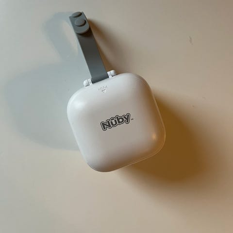 Apparat for å sterilisere smokk. Med lyd når den er rent. Pleier å ta 2 minutter. Veldig kult!