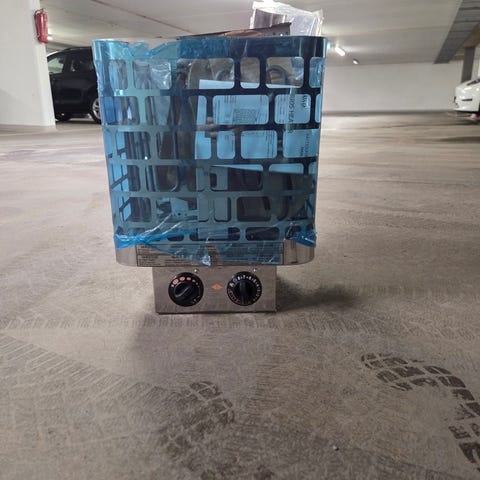 Badstue i tre for damp. Liggende. Ubrukt. Uten varmeelement.