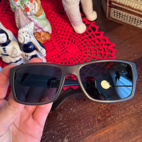 Solbriller fra ikoniske Cole Haan med blå leopard hardcase pusse klut, uten riper og slitasje, orginal vare kjøpt hos optiker i Norge nypris kr2000,-