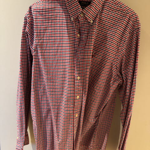 Rød/hvit rutet herreskjorte i bomull.