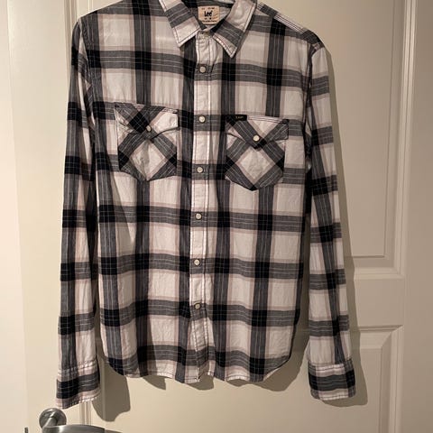 Lee dameskjorte str m. Er litt liten i størrelse, derfor bare prøvd og vasket. Ikke strøket.