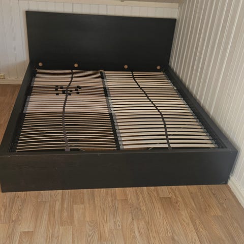 Malm dobbelt seng selges 180x200cm. Ha en liten hull i hodegalv som kan montert igjen mot veggen som gjør at hullen blir usynlig.