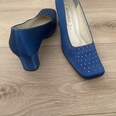 Disse stilige og tidløse selskapsskoene er svært elegante på foten, men er bare blitt brukt en gang innendørs av meg. Dette fordi jeg ikke trives i høye hæler.